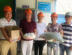 ▲總工程師 余勝利為一線職工送上防暑降溫用品