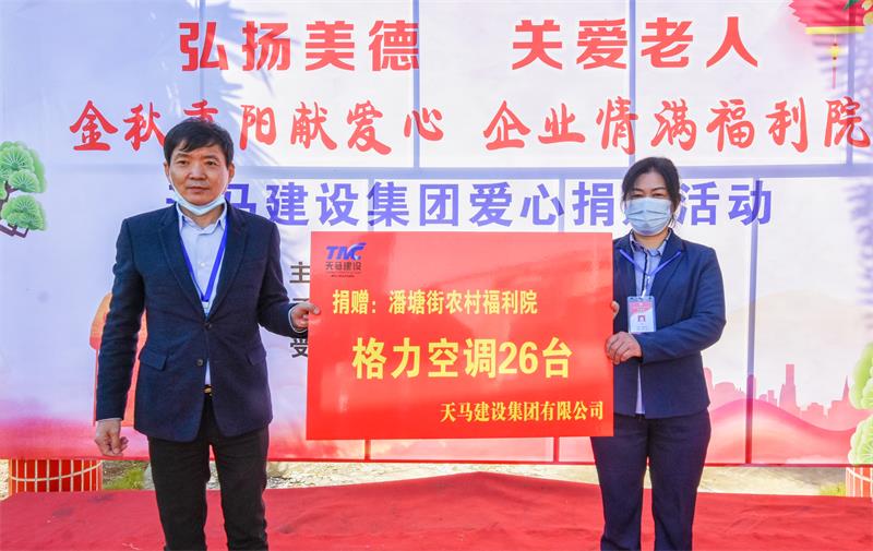 潘塘街福利院是一家公辦養(yǎng)老機構(gòu),目前供養(yǎng)了40多名三無人員、殘疾老人。為了改善福利院的生活環(huán)境,天馬建設(shè)集團采購了26臺格力空調(diào)、20臺取暖器、40床嶄新的棉被送到福利院,讓這里的老人安心過冬,受到了全體老人的一致稱贊?!熬啪胖仃柟?jié),濃濃敬老情!我代表潘塘福利院全體老人感謝天馬集團為我們捐贈的空調(diào),讓我們的老人冬暖夏涼,給我們精神上帶來更大的慰藉”。面對愛心企業(yè)的善舉,福利院院長唐家菊高興不已。